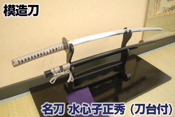 名刀シリーズ 模造刀 『水心子正秀 勝海舟愛刀 -亜鉛合金刀身- 』 二本掛け台付 布製刀袋付き コスプレのグッズとしても人気です。[ 模造刀 模擬刀 美術刀 名刀 日本刀 勝海舟 水心子正秀 黒鞘 ]
