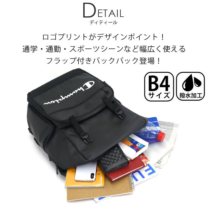 リュック 通学 Champion チャンピオン 学生 男子 女子 人気 おしゃれ フラップ かぶせ スポーツ 部活 通学用 中学生 高校生 大学生 ブラック 耐水 撥水 通勤 通勤用 シンプル リュックサック バックパック デイパック A4 B4 23L ブレンダー 57809