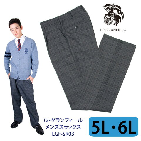 制服 スラックス メンズ SR03 グレー 5L(W95)・6L(W100) LE GRANFILE(ル・グランフィール)(スクール/スラックス/ズボン/パンツ/グレー/チェック/制服/男子/メンズ/ブランド/人気/通学/中学生/高校生/学生/入学/卒業/大きめ)(店頭受取対応商品)