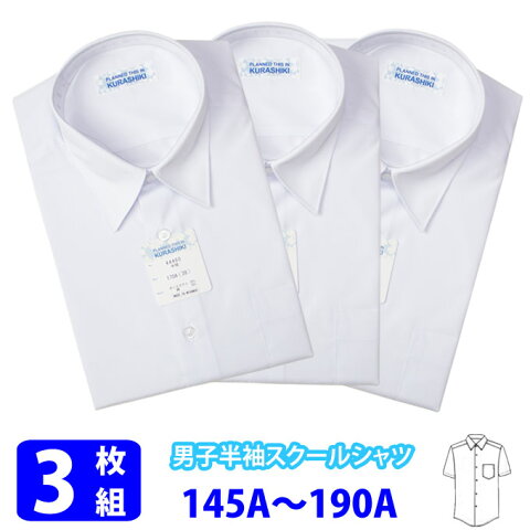 スクールシャツ 半袖 男子 【3枚組】 形態安定 立衿 (A体 145A〜190A) (スクール/シャツ/半袖/白/制服/男子/メンズ/ブランド/人気/通学/中学生/高校生/学生/入学)(店頭受取対応商品)