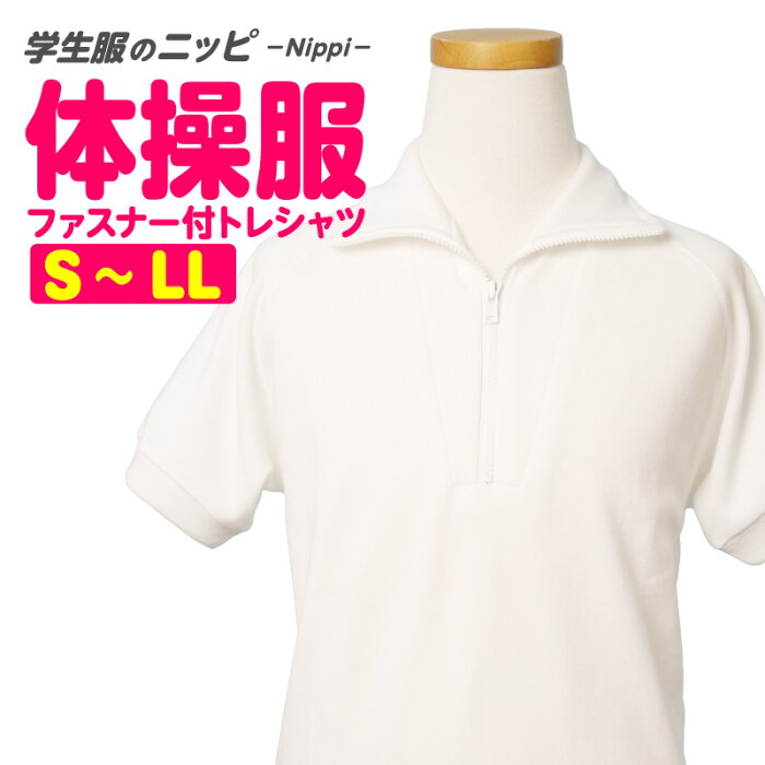 【メール便対応(1着のみ)】体操服 半袖 ファスナー付トレシャツ S M L LL 白 | 体操着 男子 女子 男の子 女の子 高校生 中学生 小学生 運動会