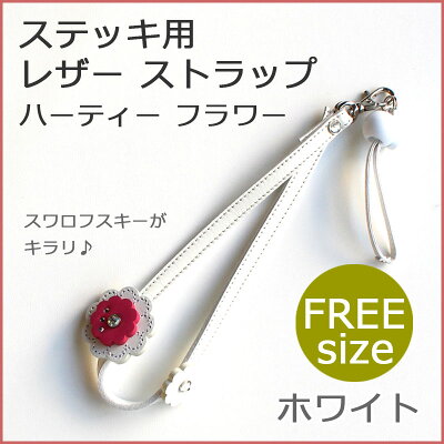 杖 ストラップ ●フリーサイズ 本革オーブ ステッキ ハーティーフラワー (ホワイト)【ステッキ用 つえ 杖ストラップ 杖ひも 杖の紐 杖用ストラップ 転倒防止 杖置き 杖ストラップ革】 専門店