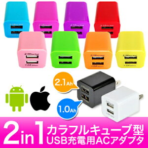 iPadも充電可能!【iOS10、iPhone7動作確認済】2口 2in1 (2.0A + 1.0A 出力)キューブ型カラフルUSB充電用ACアダプタ一【国内配送】iPhone6Plus/Xperia