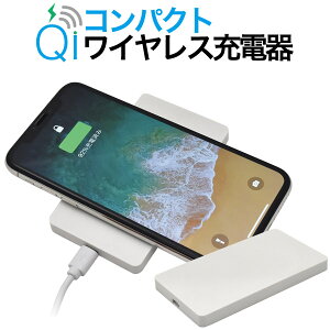 メール便送料無料【コンパクトQiワイヤレス充電器】薄型 軽量 滑り止めゴム付き UV印刷対応 オリジナルグッズ ロゴ印刷 ノベルティ ホワイト 置くだけで充電可能 チー スマホ充電器 チャージャー 汎用 スタンド機能 iPhone 8 小型 持ち運びしやすい