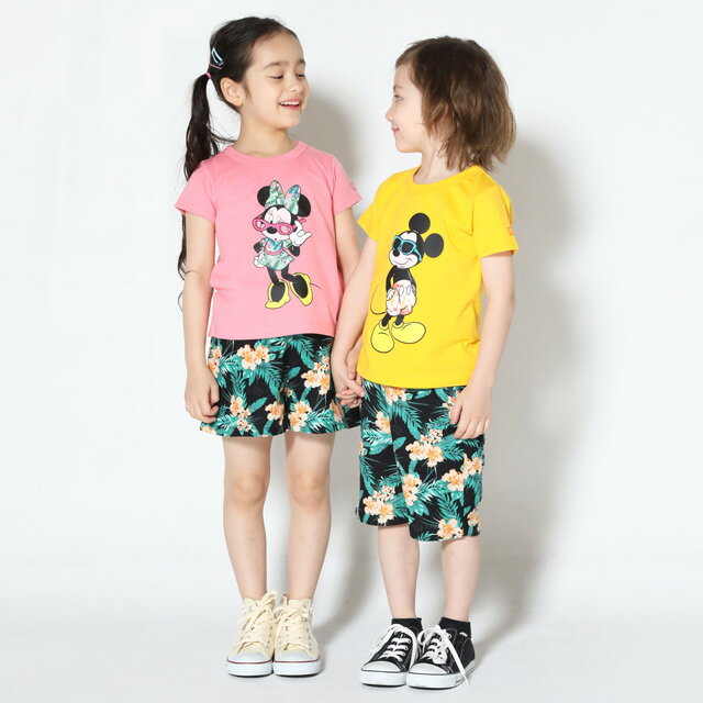こども 子ども服 トップス 半袖 人気キャラクターデザイン ミッキーマウス ミニーマウス リゾート柄 ボタニカル柄 ハイビスカス柄 おしゃれ 可愛い かわいい お揃いコーデ お友達 兄弟 姉妹 カジュアル サマーコーデ 【別売りのボトムとセットアップ可】 ★