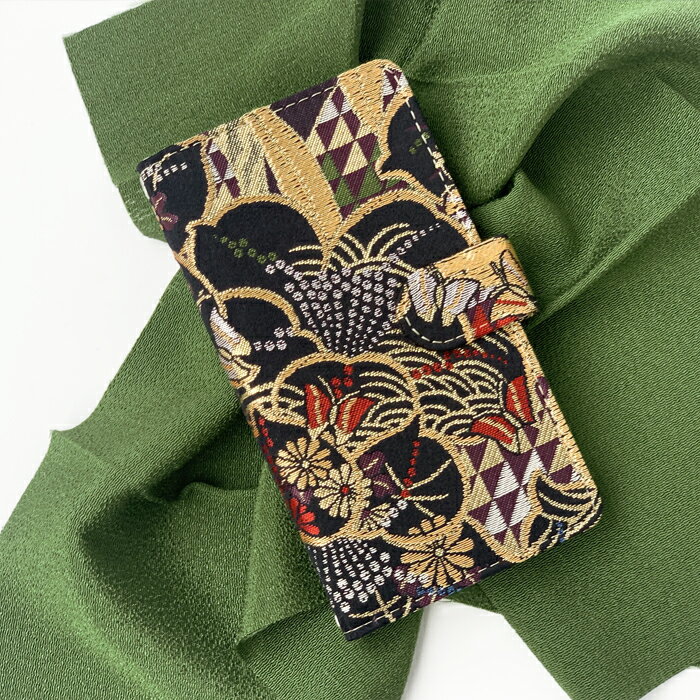 [ 上品 華やか 豪華 高級 大人 大人かわいい きれい おしゃれ お洒落 着物 和柄 和 織物 源氏絵巻 源氏物語 鳳凰 菊 牡丹 椿 流水 日本 赤 金 黒 花 女性 レディース 贈り物 プレゼント ハンドあり ベルト 手帳型ケース 手帳ケース 手帳型カバー 手帳カバー ]