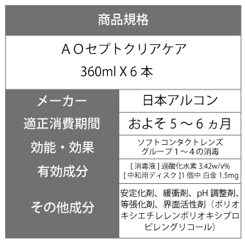 【送料無料】 エーオーセプト クリアケア 360ml×6本 ( コンタクトレンズ コンタクト 洗浄液 ソフトコンタクトレンズ 日本アルコン AOセプト ao 中和 エーオーセプト )