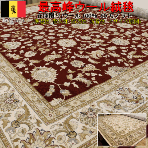 絨毯 通販 ウール カーペット 6畳 240×340 ラグ じゅうたん 限定品 アウトレット ポーランド ベージュ レッド 厚手 ウィルトン 【品名 スペリオール/2346】 約6畳 240×340cm