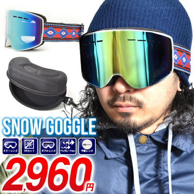 スノーボード ゴーグル ケース付き フレームレス メンズ レディース ミラー 平面 レンズ スノーゴーグル ダブルレンズ 曇り防止 アンチフォグ SNOWBOARD GOGGLE スキー スノボ 【あす楽対応】